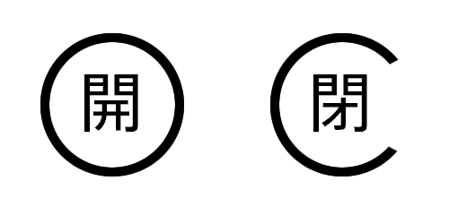 日本語がわからない人にも分かりやすいように、「開」「閉」ではなく、